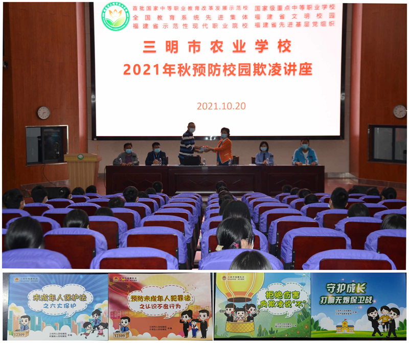 为进一步做好校园安全工作,防止校园欺凌事件的发生,增强学生法治意识,预防校园暴力事件,提高学生安全防范意识和自我保护能力。10月20日下午,乐动(中国)与三明市人民检察院,在农校报告厅开展主题为“拒绝伤害,向欺凌说‘不’”的预防校园欺凌讲座。