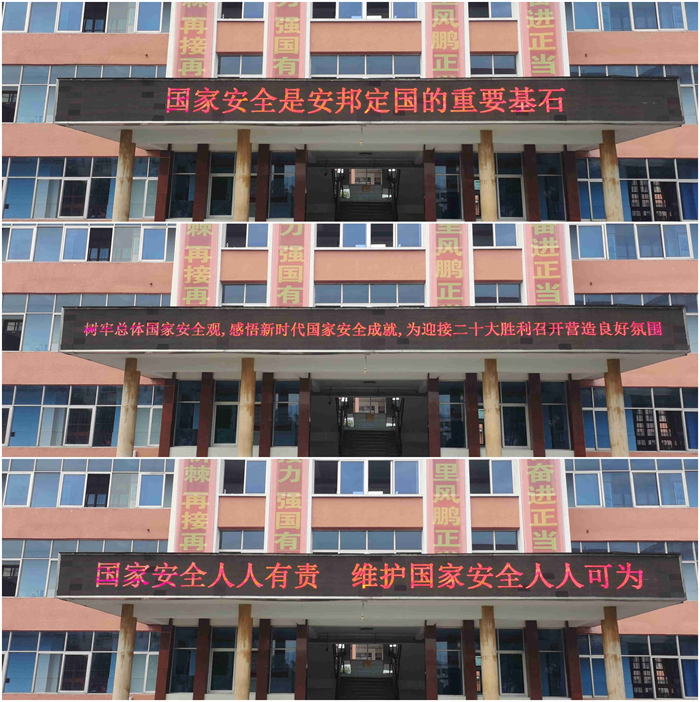 学校通过LED、大屏幕、黑板报等形式开展全民国家安全教育宣传活动。