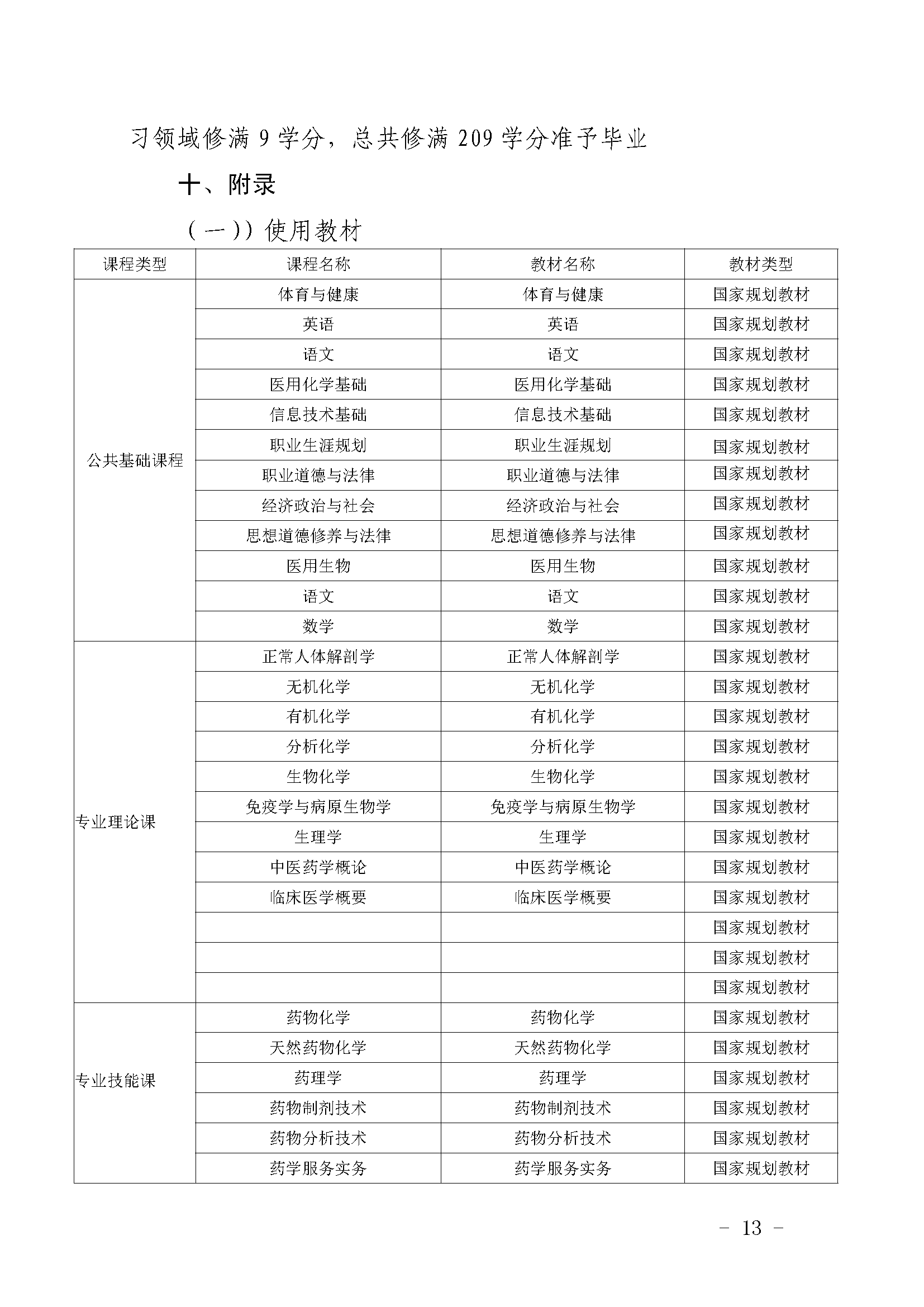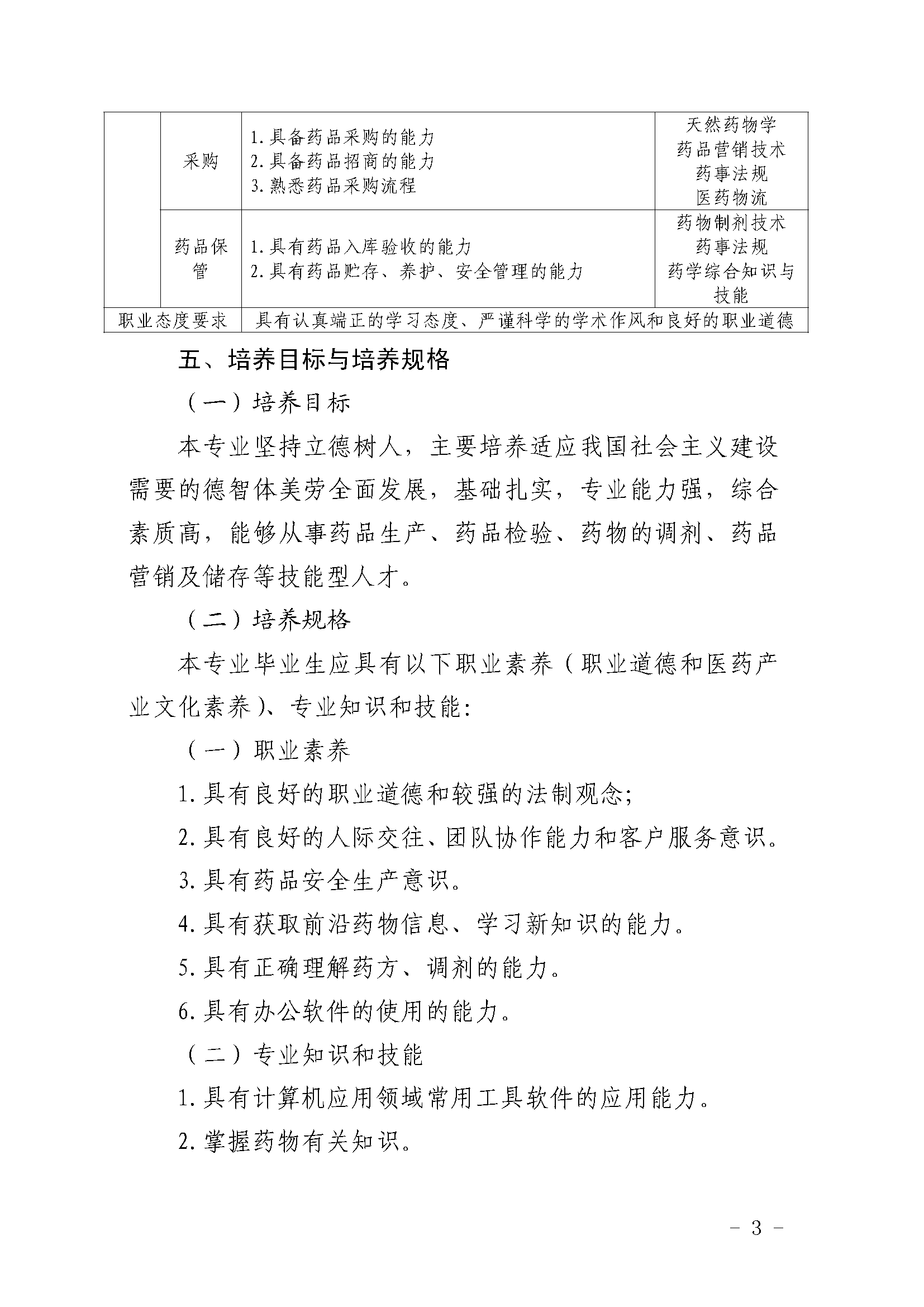三明市农业学校药剂专业人才培养方案(2023)
