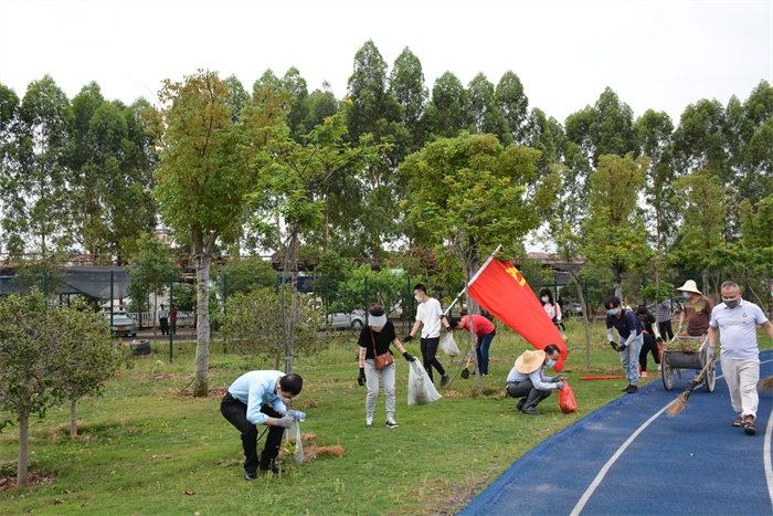 学校党员教师开展校园环境整治行动